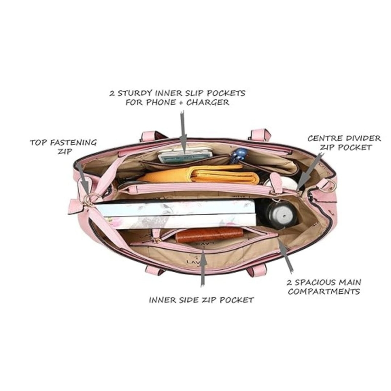 Lavie Yalta S Large Satchel is a stylish and lightweight women’s handbag crafted from premium faux leather. Featuring a trendy geometric design, multiple compartments, and a secure zip closure, it is perfect for daily outings, casual wear, or gifting.